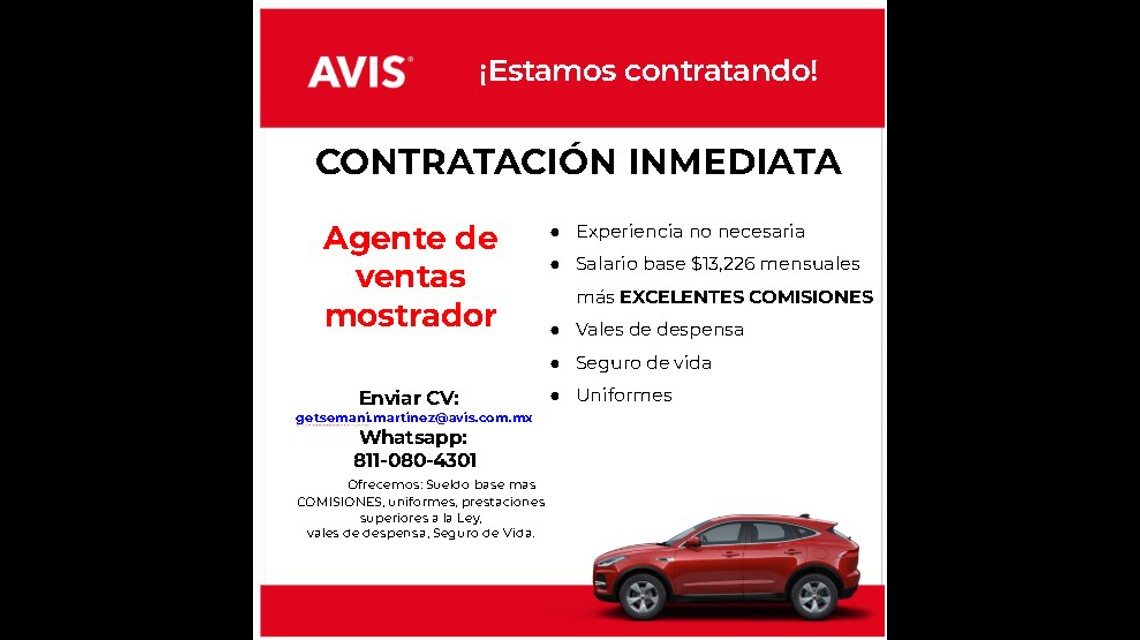 🚗 ¡ÚNETE AL EQUIPO AVIS MÉXICO! 🚗